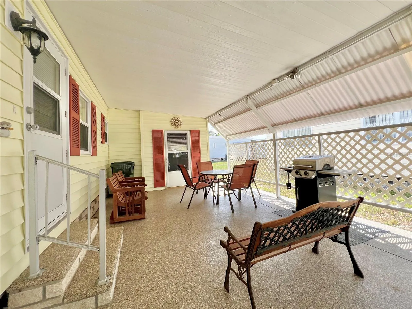 A large 2-bedroom, 2-bathroom home in the premier 55+ community of Fairway Village, where exceptional value meets an unbeatable location, ACROSS THE STREET FROM THE SOUTH POOL. You’ll enjoy the convenience of a 2-car carport and additional parking space for a golf cart. Recently upgraded, the home features NEW ROOF OVER THE SHED AND FRONT FLORIDA ROOM RECENTLY INSTALLED IN NOVEMBER (2025) Also has NEW windows in the front Florida room installed in 2024, inhancing the bright, north-facing Florida room with natural light and creating a cheerful atmosphere all year long. A re-coated metal roof over adds to the home’s durability and style, while the Florida room is equipped with its own A/C unit for ultimate comfort. The home’s central A/C – heat strip, was replaced in 2007. Has been inspected and checked over with return ductwork upgraded to 14” ensuring you’ll stay cozy no matter the season. This fully furnished home is move-in ready, and with a hide-a-bed in the living room, it offers additional sleeping space for guests. The beautifully designed Decocrete driveway, completed in 2023, adds to the home’s curb appeal, while a new vapor barrier and under-home screens installed in 2017 promise lasting protection. Nestled in a premier 55+ community, Fairway Village offers a wealth of amenities for an active, vibrant lifestyle. The expansive 19,000 sq ft clubhouse is the heart of social activities, hosting dances, bingo, and card games. Residents can unwind by one of two sparkling pools or jacuzzis, enjoy a match on one of eight covered shuffleboard courts, or tee off at the 9-hole par 3 golf course (available for a nominal fee). Fairway Village is ideally located near top attractions, airports, and pristine beaches, making it perfect for both year-round living and seasonal escapes. With your purchase, you’ll also receive a share in the community, adding to the value of this property and offering you a chance to join a warm, welcoming neighborhood where the best years of your retirement await.
