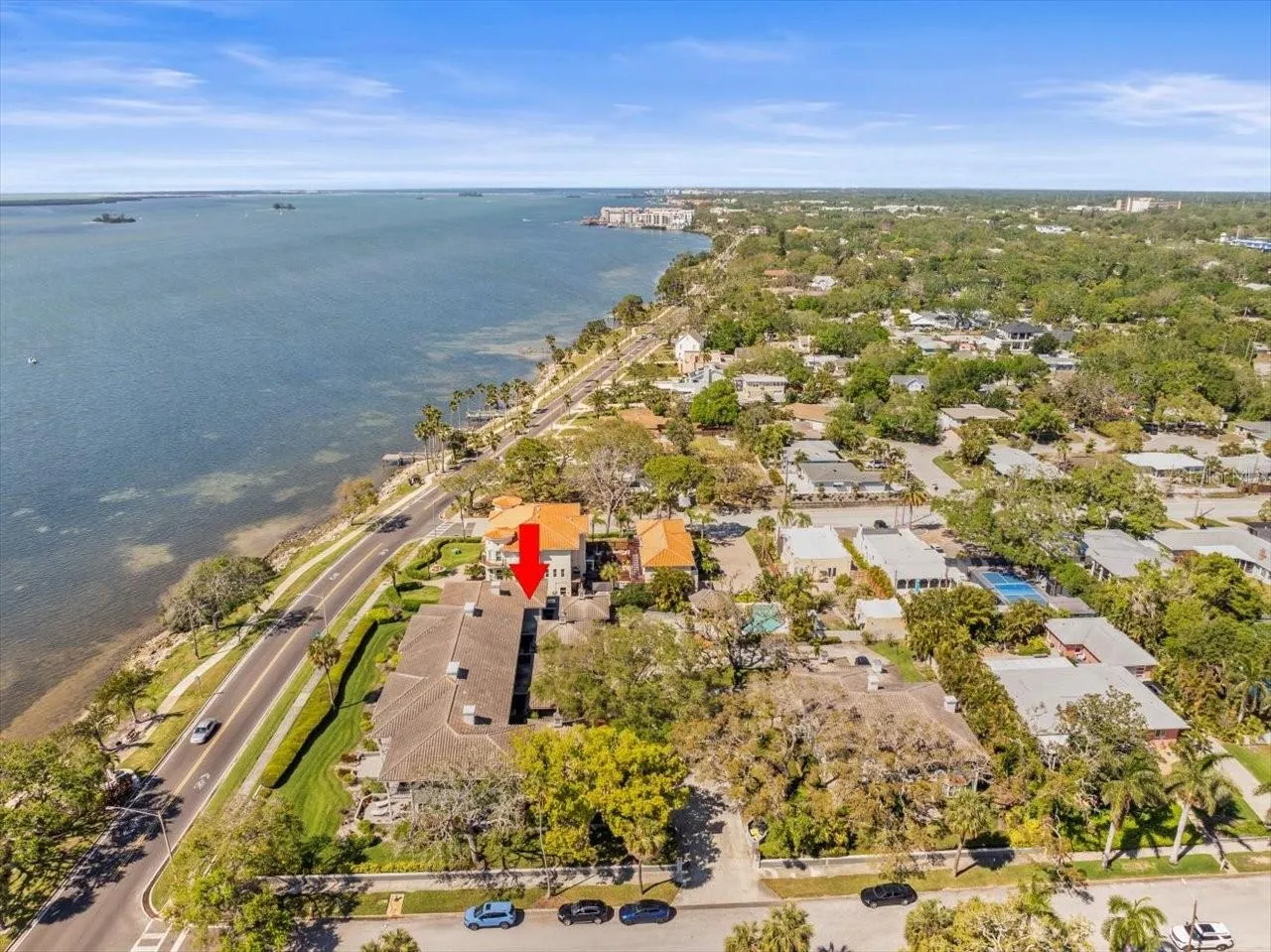 water, Clearwater Beach, Caladesi Island. Enjoy the uplifting view of bikers, walkers and jogger’s enjoying the Edgewater trail. Also on the second floor are 2 nice size additional bedrooms and a second, shared full bathroom. This property is extremely unique with the following combination of features that are hard (if not impossible to duplicate) First, absolutely amazing open water expansive views. Second, Flood zone X (no flood insurance required for lenders) and water did not reach the land of this complex during last year’s “worst flood in 100 years”. Third, Location and proximity to Downtown Dunedin, Honeymoon Island and Clearwater Beach. Fourth, private 2 car garage, 3 full bedrooms, 2.5 baths, Elevator, Community Pool, and exquisite updates including features hickory wood flooring, motorized blinds, custom