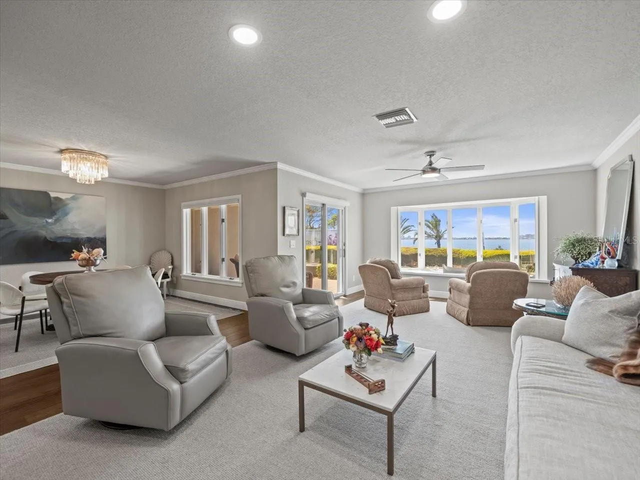 Experience stunning sunsets from the comfort of this spacious and open 3 Bedroom, 2.5 Bathroom townhome overlooking the breathtaking expanse of St. Joseph’s Sound and the Intracoastal waterway. Step into luxury as you enter through the privately gated front courtyard into an elegant foyer that leads into an open living room with panoramic waterfront views. Easily entertain guests in the waterfront dining room & kitchen, complete with bar seating, flat stone stack brick (from the historic Belleview Biltmore Hotel) fireplace, and a private covered lanai and outdoor waterfront patio. The first floor also features a spacious laundry room/butler’s pantry with a full-size washer & dryer and elegant 1/2 bath, front courtyard, two car garage and ample storage. Take your private elevator (or stairs) to the second floor to discover the waterfront primary bedroom with an ensuite bath and another private outdoor covered lanai overlooking breathtaking views of nature,