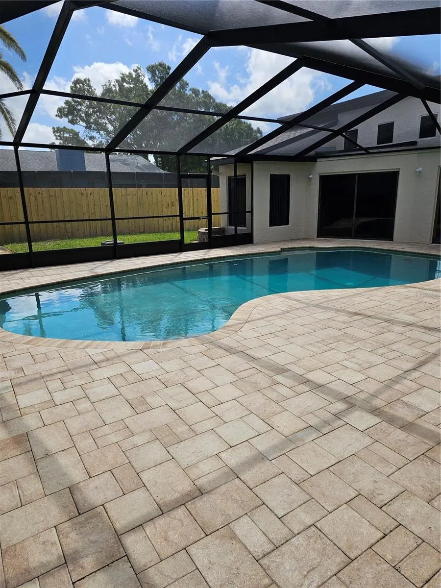 PRICE REDUCED!! Beautifully updated 3 Bedroom, 2 Bath, 2 Car Garage home located in Blue Water Cove. This home is located at the end of the street. 2,332 sq. ft. Home has been completely updated with New Roof, New Paint inside and outside, Newly Updated Kitchen with Quartz Countertops, Cabinets, GE Appliances, Tiled Living Areas, Laminate flooring in All Bedrooms, 8 Ceiling Fans, Storm Impact Windows, 2 Fireplaces, Pool Resurfaced, Upgraded Pool Deck to Pavers, Rescreened Pool Enclosure, Resurfaced Garage Floor, New 4-Ton AC and so much more. Double Gate in fence on back side of home for easy storage of RV or Boat. Move-In Ready! NO HOA Fee! Home had some water intrusion during Hurricane Milton but repairs have been completed.