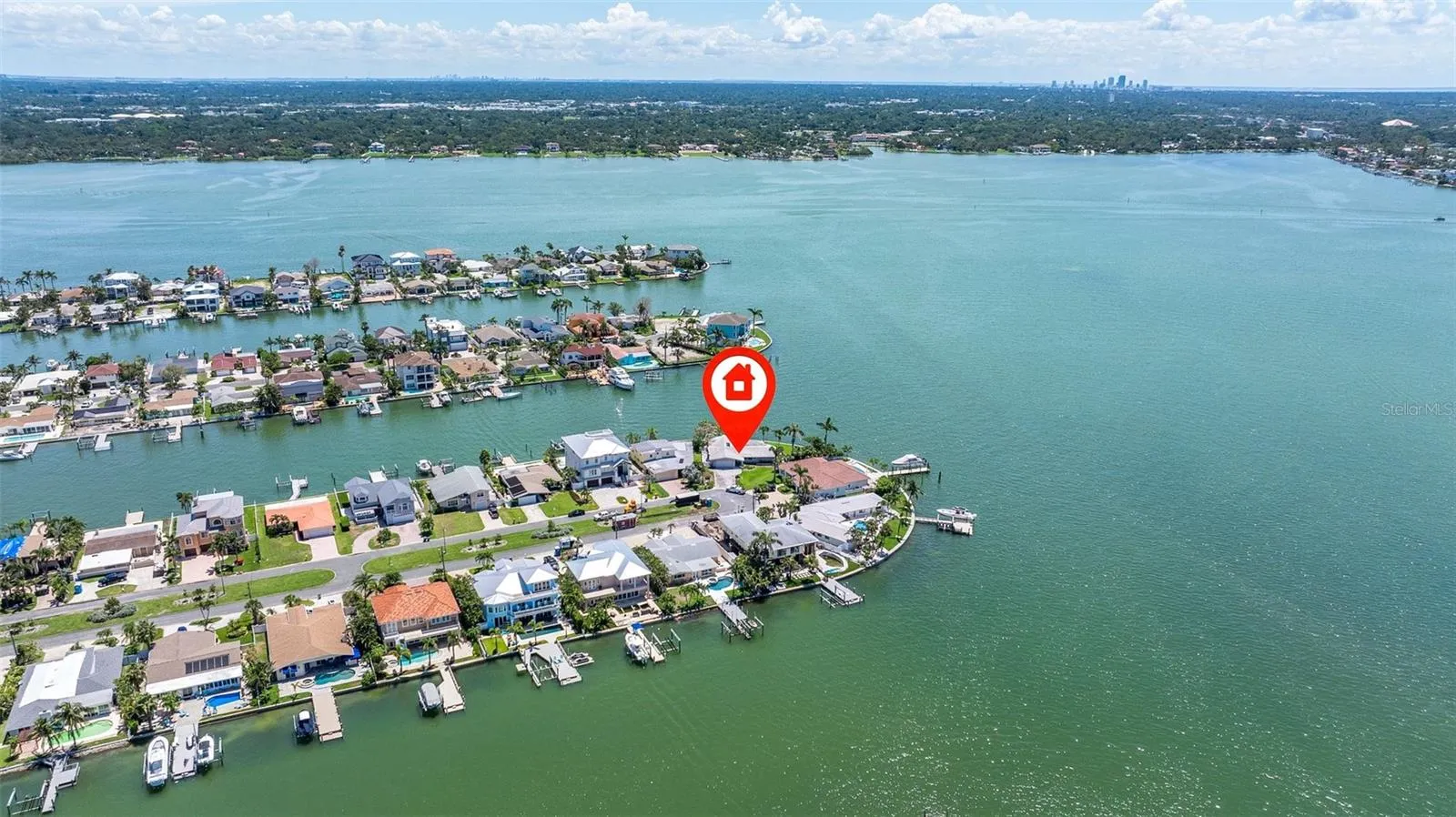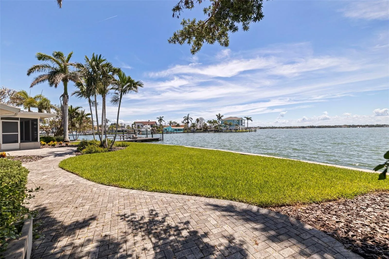 walls, enabling a fantastic indoor-outdoor living environment when desired. Overlooking the waterfront, the owner’s suite contains a sizable walk-in closet and full private bath. The second bedroom is sizable, has private views of the waterway and a spacious walk-in closet. The third bedroom makes for a fine office and has two large walk-in closets. Step out to the 360sqft screen enclosed lanai and take in serene, unforgettable open water views that stretch for a mile across Boca Ciega Bay and the Intracoastal Waterway. Enjoy dazzling days, sparkling nights and the extraordinary marine life found in these remarkable waters. Outside the lanai, you’ll discover wide, expansive and richly manicured grounds with towering Royal Palms, lush subtropical vegetation, meandering brick paver pathways and a fabulous private Zen/meditation garden overlooking the water. Updated dock has a seating bench, fish cleaning station, step down platform for kayaks/paddleboards and a 10,000 lb boat lift for fast, easy access to the Gulf of Mexico. You’ll appreciate the hurricane impact windows/sliders and the peace of mind that they provide. Located in one of Tampa Bay’s best boating communities – close to shopping, dining, entertainment and the world class beaches to Treasure Island. This is a rare “point property” opportunity with huge panoramic views that only 166ft of seawall can deliver.