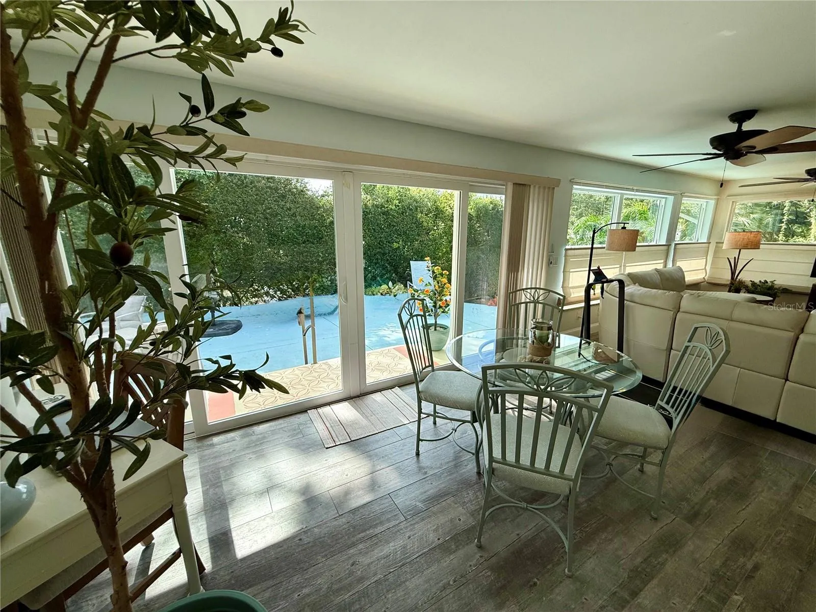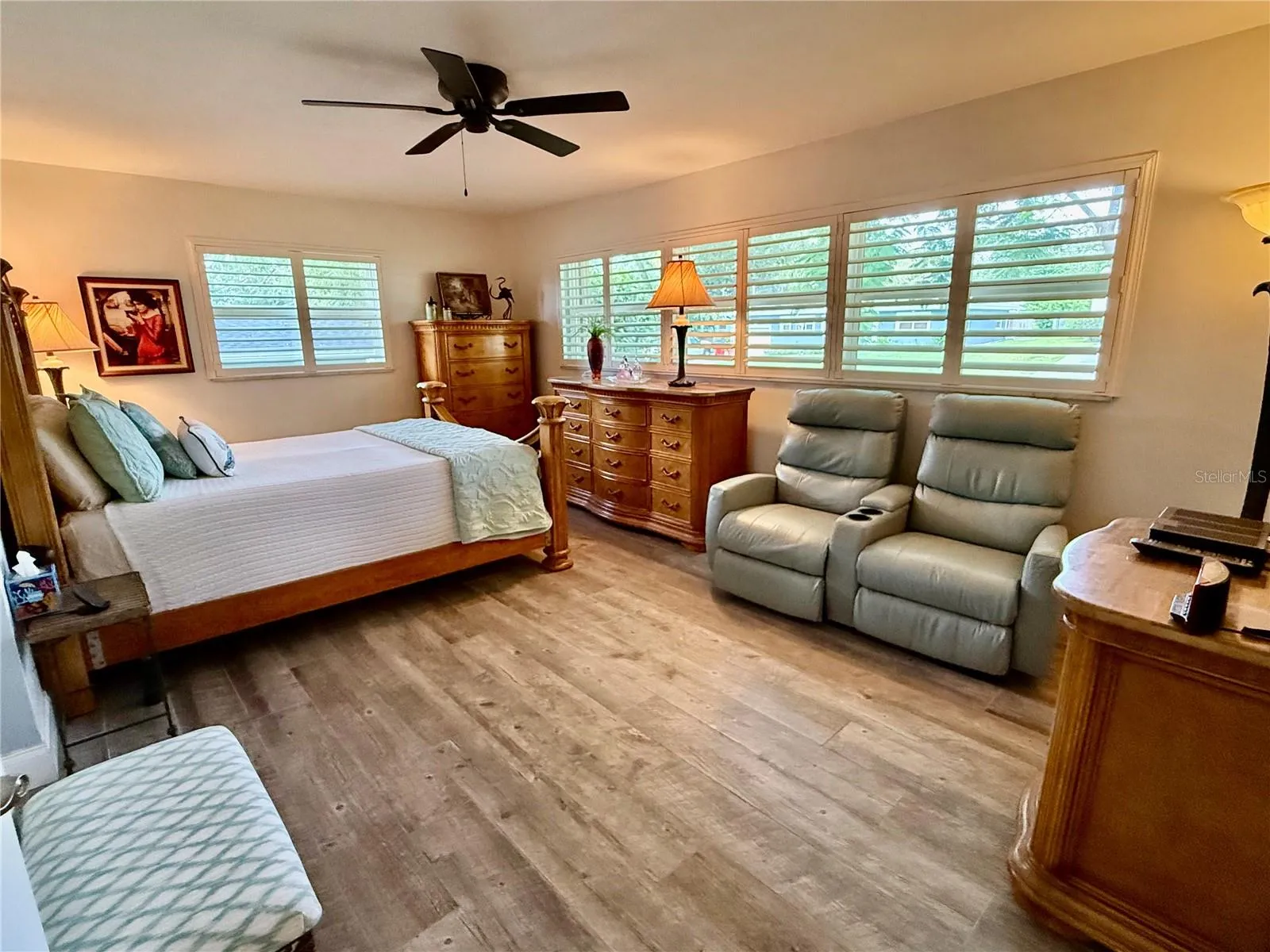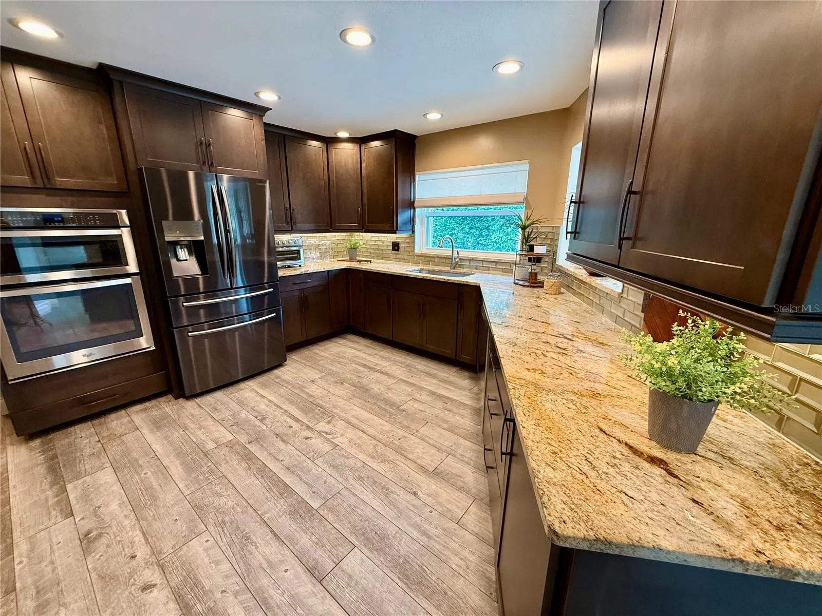 plank-style porcelain tile floors flow throughout. The master en-suite is spacious