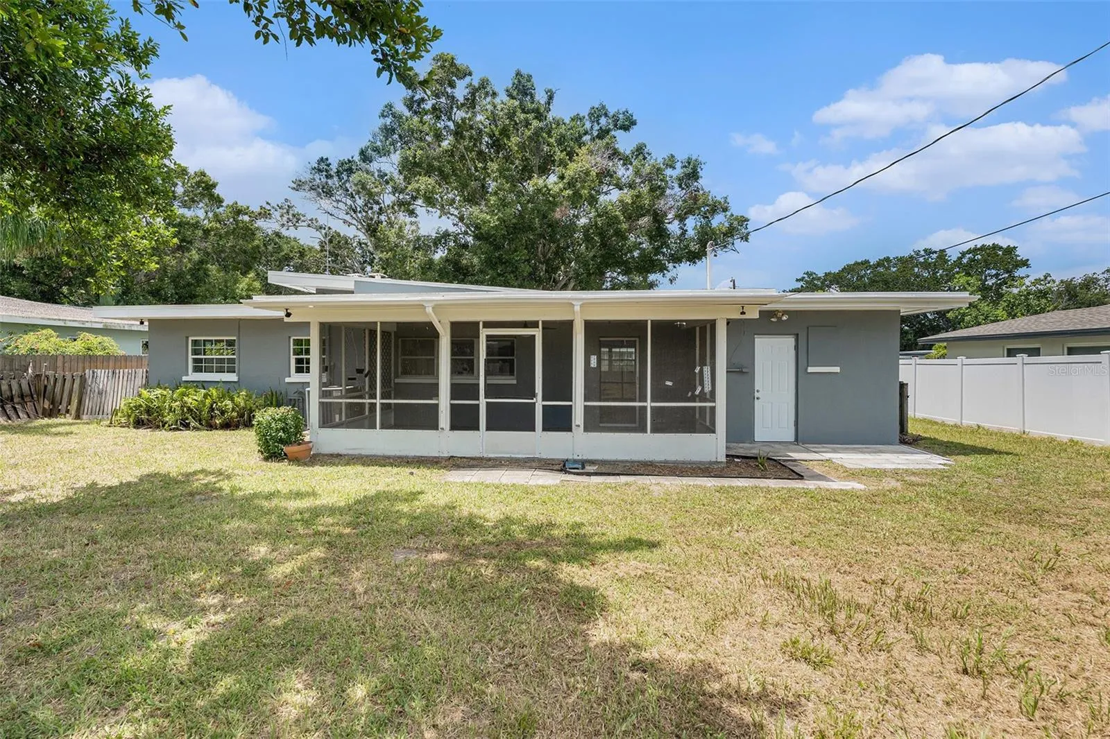 with mature greenery and a fenced perimeter along three sides, the property offers both curb