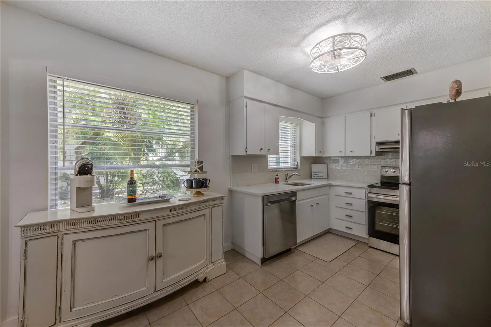 Look at this Hidden Gem! Welcome to Bay East Three Condos, a PET-FRIENDLY, NO AGE RESTRICTION community with LOW HOA fees. This beautifully updated Villa-style end unit is located on a private quiet street and boasts an open floor plan with a large family room/dining room combination and eat-in kitchen. The BRAND-NEW KITCHEN is stunning with new quartz countertops, tile backsplash, and all new stainless-steel appliances. The 2 large bedrooms (with lots of closet space) and two full updated bathrooms make this home move in ready for you. An indoor laundry room with new washer/dryer are included. There is owner assigned parking with plenty of additional guest parking. The outdoor front patio that overlooks the well-maintained community completes this beautiful home. It is large enough to host gatherings of family and friends. Updates include new LVP flooring, all new interior trim, ship-lap feature wall, new interior paint, updated bathrooms, all new light fixtures, new interior doors, & barn door, and many new features throughout. This Villa offers stylish, yet comfortable living with all the amenities you desire. The Association fee covers so many expenses including Cable TV, Community pool, Clubhouse, Maintenance Grounds, Maintenance Exterior, Exterior Insurance, Exterior Pest Control, Recreational Facilities, Water, Sewer, and Trash. It is conveniently located to shopping, great restaurants, airports, and the beautiful gulf coast beaches with close proximity to all of the many great attractions and entertainment venues available in the Tampa Bay area. The best part is NO-FLOOD Insurance is required! Don’t let the opportunity to own this property slip away! It is TURN-KEY and priced to sell so it won’t last long!