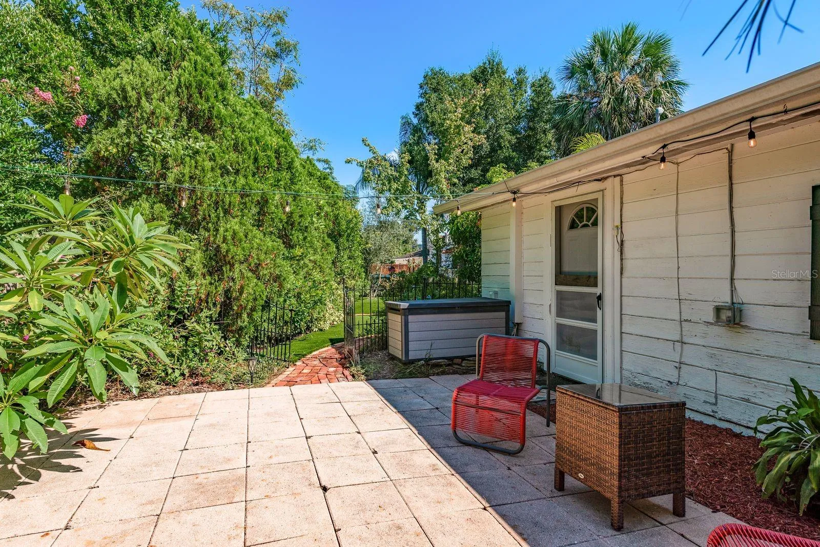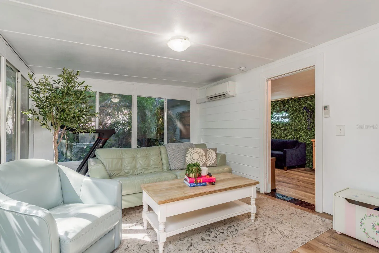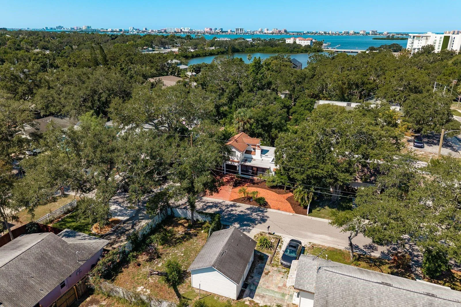 Experience the best of coastal living with this versatile, income-generating property, nestled within a serene tropical landscape. Ideal for investors, multi-generational living, or those seeking a live/work retreat, this rare gem features multiple residences, lush outdoor spaces, and direct access to the Pinellas Trail. Steps from the Dunedin border! The grounds feel like your own private resort, surrounded by mature shade oaks, swaying palms, and even your own mango tree. Brick walkways wind through cozy nooks and open gathering areas, perfect for enjoying Florida’s outdoor lifestyle. Designed with Spanish-inspired architecture, the main residence greets you with a circular brick driveway, clay tile roof accents, and a welcoming porch with Spanish tile flooring. Step inside through wood-framed French doors to a charming living room featuring hardwood floors and a classic fireplace. The adjacent dining room is flooded with natural light from a picture window overlooking a lush garden, while the fully renovated kitchen is both stylish and functional, boasting granite countertops, white shaker-style soft-close cabinetry, hammered copper dishwasher (2024), Induction range (2025) and a “smart” refrigerator (2025). A laundry/storage room includes a stacked washer/dryer, utility sink, and shelving. A leaded glass door leads you to the rear patio and garden, where a private hot tub awaits. The primary bedroom offers newer luxury vinyl flooring and a private sunroom perfect for a home office, yoga space, or quiet reading nook with direct yard access. The second bedroom connects to an updated bath with basket-weave stone tile flooring and a modern walk-in shower. Accessible from both inside the home and via a wide outdoor staircase, this bright and spacious second-floor suite is perfect as a primary ensuite, guest quarters, or rental unit. Features include an oversized private deck, kitchenette with butcher block counters, soft-close cabinetry, and stainless sink, Murphy Bed for flexible living and a full bath with tiled tub/shower combo. Across from the main house, a charming standalone cottage offers a bright, open living area with large sliding windows, tile countertops, ample kitchen storage, and space for dining/game area. There is also a private bedroom with walk-in closet and a full bath and private rear patio… perfect for guests, short-term rentals, or extended family stays. Features & Upgrades include high-efficiency mini-split HVAC systems in all residences, newer sewer lines and main water supply lines to both main house and cottage, a gas water heater (2019), Tesla charging station, and one-car garage with newer garage door. NO HOA. FLOOD ZONE X. This unmatched location is situated directly on the Pinellas Trail, enjoy 47 miles of scenic biking and walking from your backyard. Ride north to Downtown Dunedin’s shops, microbreweries, and farmers markets, or head south to historic Clearwater and world-famous Clearwater Beach. Just a block away, launch your kayak to explore uninhabited coastal islands or drop your boat in at the Seminole Boat Ramp. You’re also minutes from award-winning beaches, premier golf courses, top-rated hospitals, airports, restaurants, retail, and live music venues. This is more than a home — it’s a lifestyle. Whether you’re looking for a profitable investment, a multi-unit family property, or a peaceful tropical retreat, this Clearwater oasis has it all.