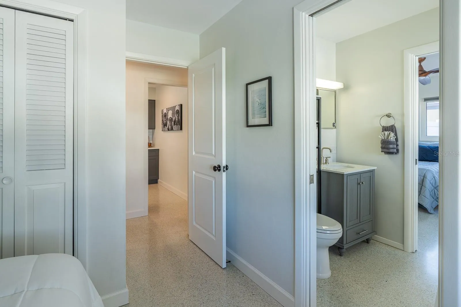 cohesive and coastal elegant feel. The bedrooms are thoughtfully positioned to the right of the home, connected by a well-appointed Jack-and-