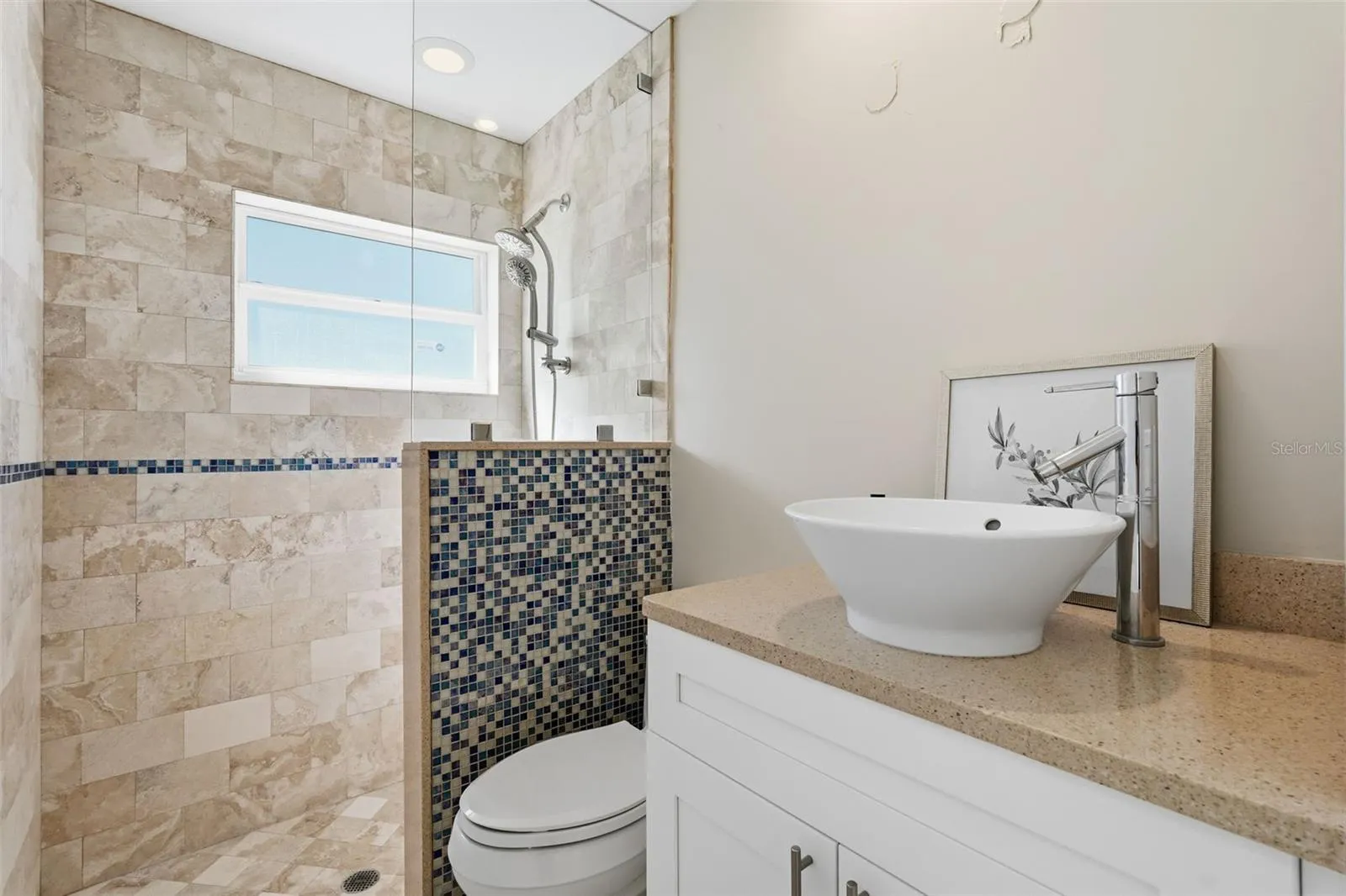 Everything feels renewed: new HVAC system, hurricane-rated windows and doors with shutters, mold- and moisture-resistant drywall, raised electrical outlets for flood protection, and updated electrical throughout. The former porch has been fully enclosed and finished, adding extra flexible living space ideal for a den, office, or optional third bedroom. The lower kitchen cabinets and all bathroom cabinets have been replaced, along with new kitchen appliances and a new washer and dryer. Additional highlights include a tankless water heater, elegant wainscoting, and a freshly painted garage with a new electric door.