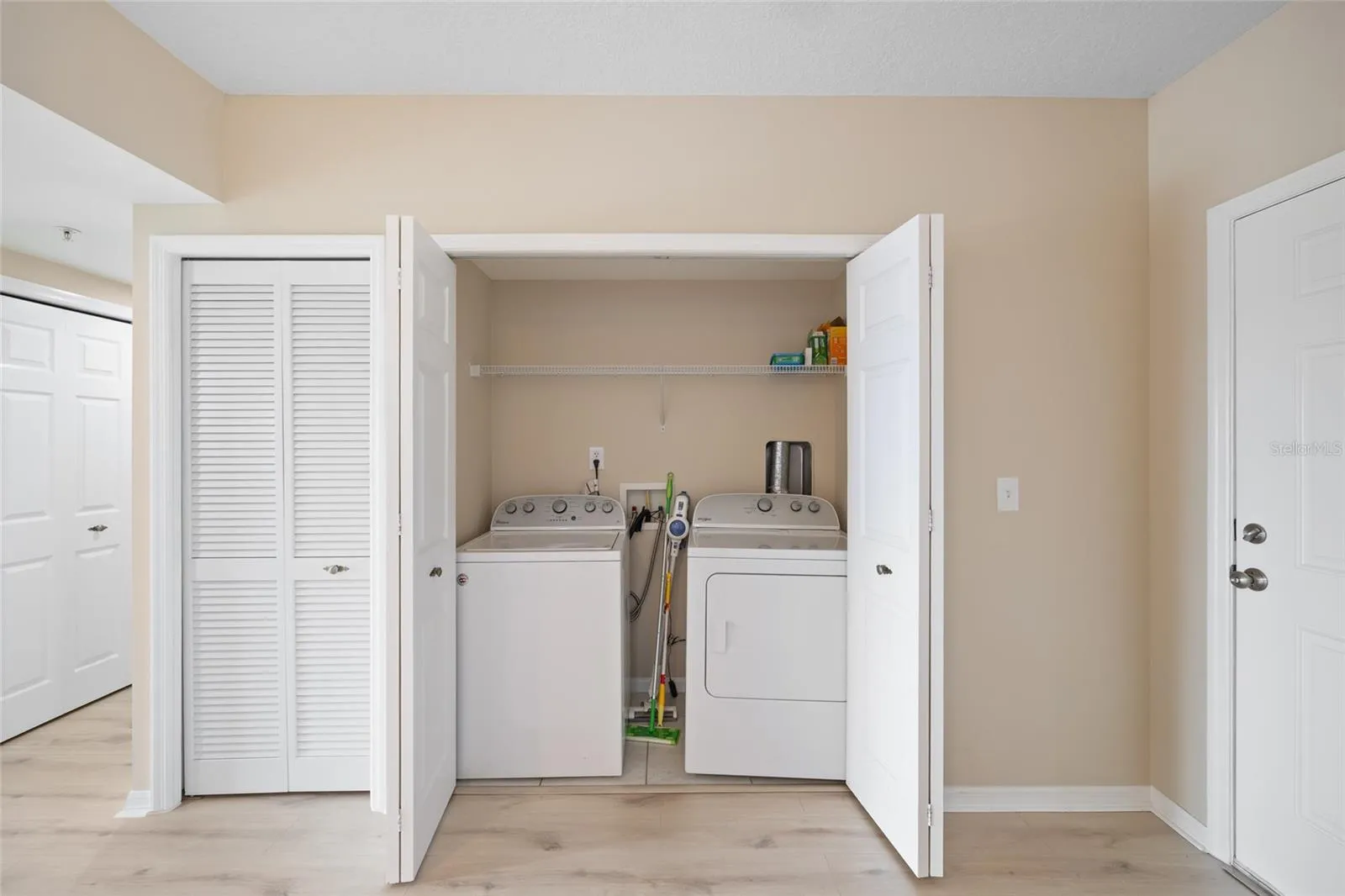 The expansive primary bedroom retreat offers his-and-hers walk-in closets, a luxurious ensuite bathroom with double vanities, an oversized walk-in shower and a private toilet closet. A split-bedroom layout ensures privacy, and the versatile second bedroom easily accommodates guests, a home office, or a combination of both. Additional conveniences include an in-unit laundry closet.