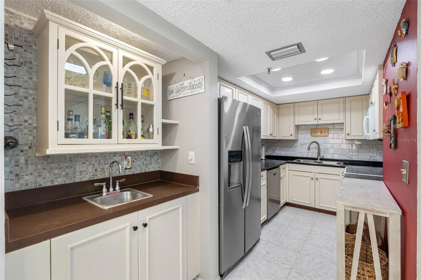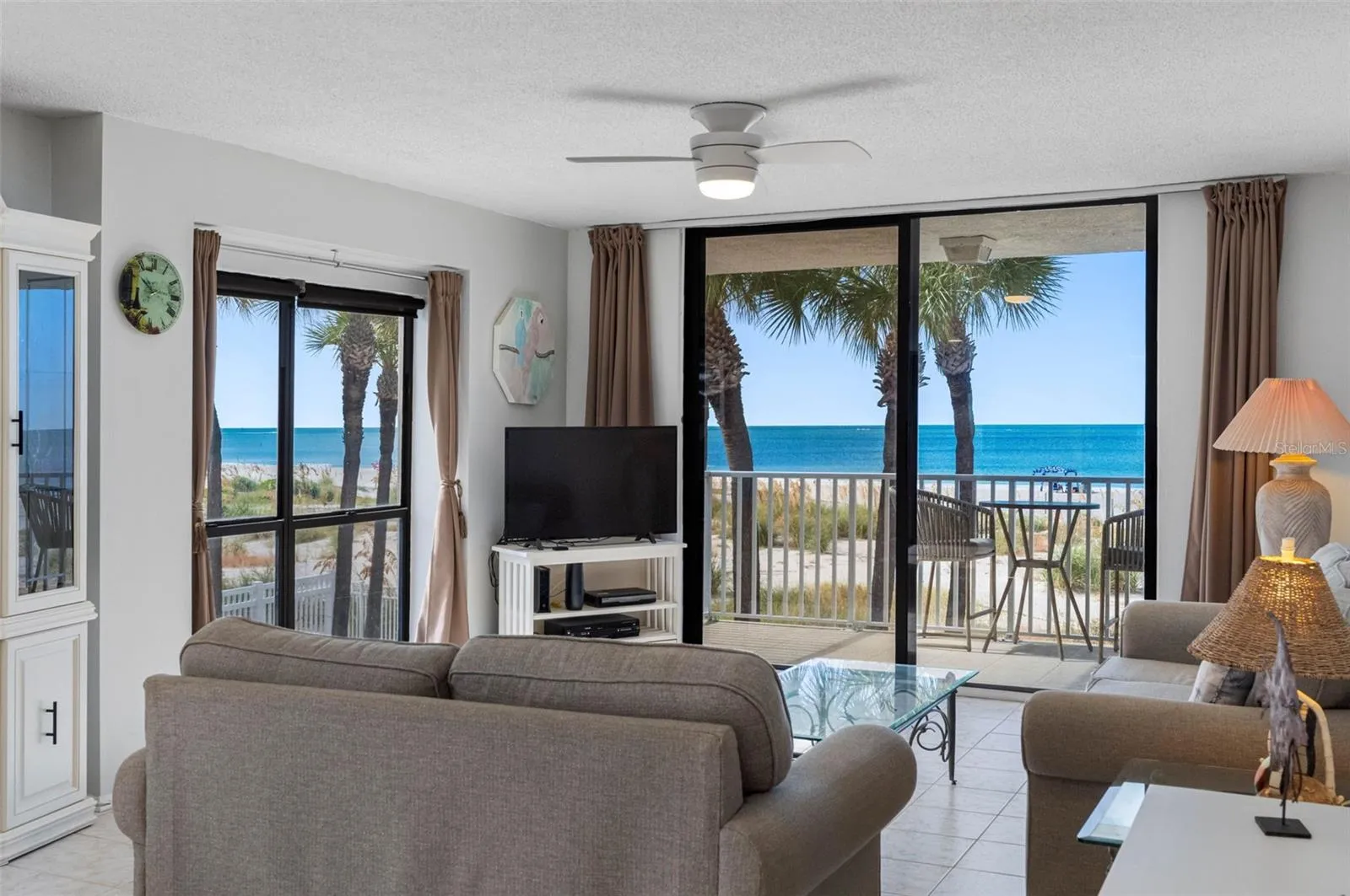 This rare direct beachfront opportunity in the highly sought-after Chambre building in Madeira Beach offers the perfect blend of coastal luxury and everyday convenience. A wonderful place to experience breathtaking sunsets. This spacious 2-bedroom, 2-bathroom corner unit boasts unobstructed panoramic views of the Gulf of America and the world famous Johns Pass. The thoughtfully designed layout includes a generous primary suite featuring an en-suite bathroom. Each bedroom has a walk-in closet, and convenient access to in-unit laundry. A built-in wet bar adds functionality and charm, making it ideal for entertaining guests while enjoying the stunning beachfront scenery. The kitchen is outfitted with stainless steel appliances, a brushed nickel touchless faucet, and ivory cabinetry, creating a bright, modern space. Throughout the unit, brown fabric roller shades provide both privacy and light control, while brushed nickel hardware on all interior doors adds a cohesive, contemporary finish. A reserved covered parking space under the building is included, paired with tons of guest parking. Easy beach access is enhanced by conveniently located outdoor showers for effortless clean-up after a day by the water. Set back from Gulf Boulevard on the quieter Gulf Lane, the Chambre is a well-maintained, 25-unit community that offers a peaceful and private beachside experience. Residents and guests enjoy an array of amenities, including a heated beachfront swimming pool and spa, a poolside grilling station and shower, a private beachside sun deck, and a secured lobby with elevator access. Ideally located, this property is just a short walk to the vibrant shops and restaurants of John’s Pass Village and within easy reach of local pubs, grocery stores, and convenience shops. Outdoor enthusiasts will appreciate quick access to fishing, boating, paddle boarding, jet skiing, swimming, and kayaking. Centrally positioned, Its about 4 blocks away from world famous Johns Pass Boardwalk , 20 minutes to both Downtown St. Petersburg and Clearwater Beach, and within 45 minutes of Tampa International and St. Pete–Clearwater International Airports. This is a rare chance to own a beachfront residence in one of Madeira Beach’s most desirable communities—perfect for full-time living, or take advantage of 7 day minimum rental period for a beach getaway.