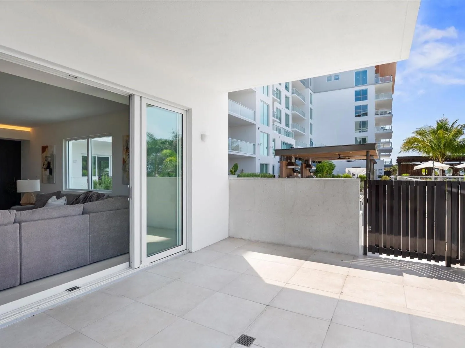 Luxury living at Serena by the Sea with 23,000+ SF of resort-style amenities! Residence #103, elevated above street level, is a unique 2 Bedroom + Den, 2.5 Bathroom unit boasting intracoastal water views, 3 exposures (South, West, and North), and conveniently located on the amenity level with direct access from one of its THREE private terraces to the pool deck with outdoor amenities including the resort-style saltwater pool, jacuzzi, outdoor shower, fire pit lounge, summer kitchens, cabanas, dog run, and more. This 2,268 SF corner unit features an open kitchen with top-of-the-line Gaggenau appliances including gas cooktop, wine cooler, French door refrigerator integrated within the Italian cabinetry, dishwasher, and more. The luxurious Master Suite features two private terraces, walk-in closet with custom built-ins, and En Suite Bathroom with double vanity, glass enclosed dual shower, and separate soaking tub. Second Bedroom Suite features access to west facing terrace, en suite bathroom, and walk-in closet with custom built-ins. A Family Room/Den offers additional living space perfect for a home office, and a Powder Room ideal for guests, plus in-unit laundry room. This unit also comes with 2 reserved parking spaces and a storage unit. Other building amenities include 24/7 concierge, gym, social room & lounge, billiards and card tables, catering kitchen, and Spa with massage room, hair salon, sauna, second jacuzzi, locker room, and more. Must see!