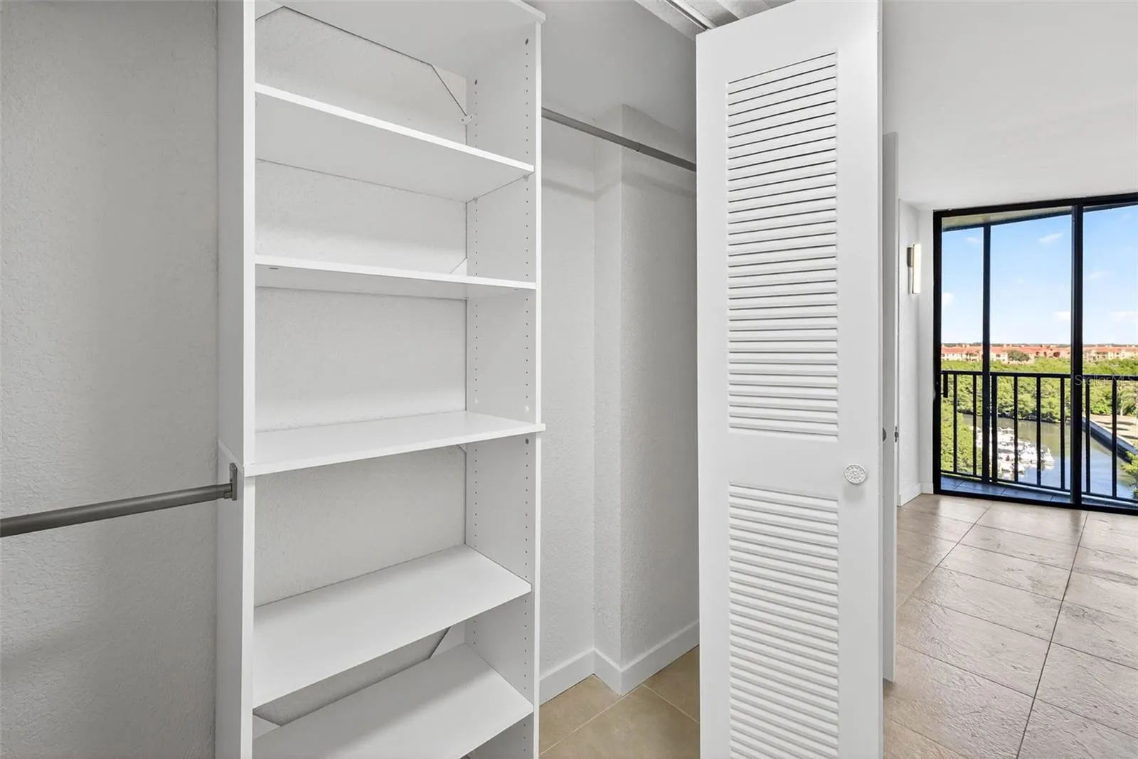 The layout is smart and intuitive: the kitchen to the left, guest suite to the right, and an open living area that flows directly to a screened balcony overlooking the marina, mangroves, and bay. It’s the perfect spot for morning coffee, evening wine, or simply watching the water and boats drift by. Every moment here feels relaxed—and a little cinematic.