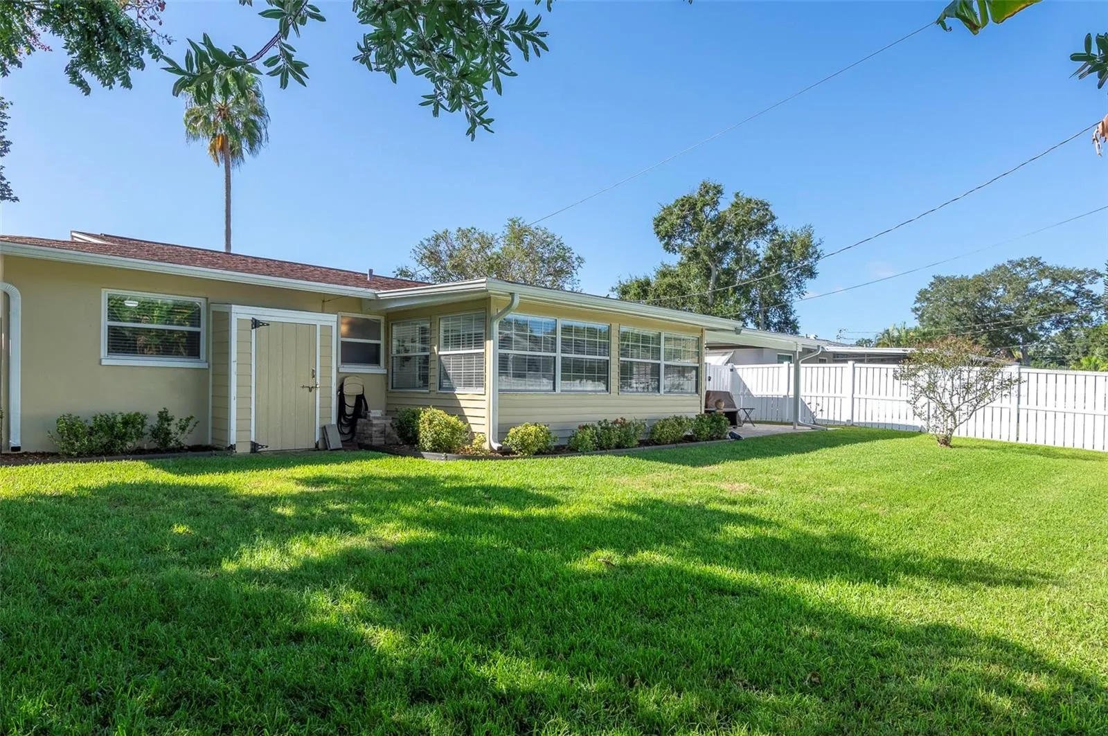 • Additional storage in the back yard which has a shed that holds the hurricane wood panels and extra tile flooring.