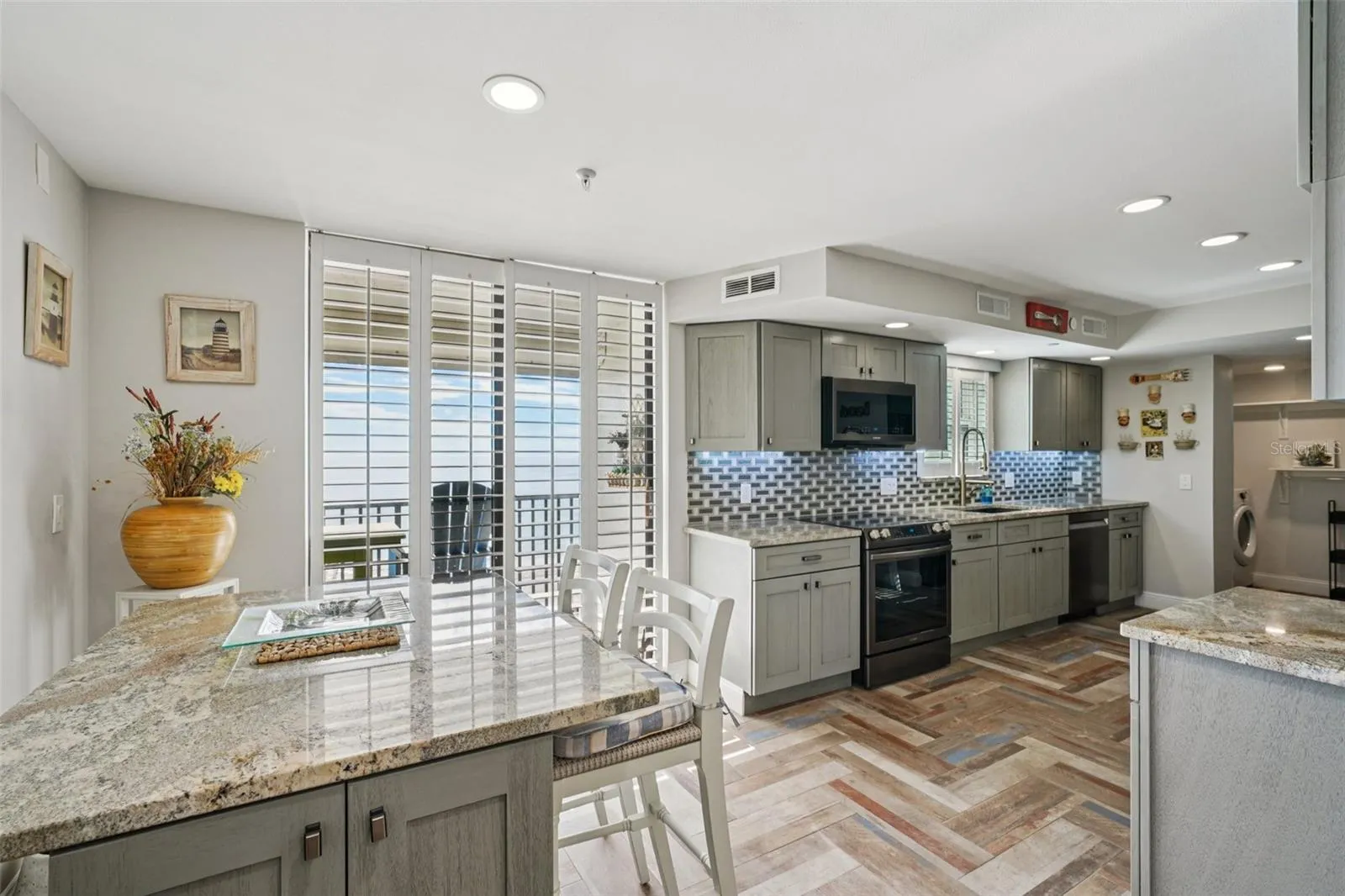 Welcome to a slice of paradise at 15316 Gulf Blvd, Unit 301 in Madeira Beach, where luxury meets the tranquil embrace of the cool winds of the Gulf. This exquisite three-bedroom, two-bathroom corner condo offers 1,625 square feet of lavish living space designed for those who crave an unparalleled beachfront lifestyle. Imagine waking up each morning to the soothing sound of waves gently lapping at the shore, sunlight streaming through tall windows, and a horizon that stretches endlessly before you. Step inside and feel the seamless flow of this thoughtfully designed home. The open-concept living area invites you to unwind, with glass doors that lead you to the crown jewel of this residence, a stunning 369 square foot wraparound balcony. This private oasis, with its hurricane-ready electric metal shutters, offers a commanding vantage point over the sparkling waters. Picture yourself savoring a morning coffee as the sun rises or indulging in a sunset cocktail as the sky transforms into a canvas of vibrant colors. The gourmet kitchen is a masterpiece of design and functionality, perfect for those who love to entertain or simply enjoy culinary excellence. Outfitted with a high-end Samsung appliance package, including a state-of-the-art three-door refrigerator, dishwasher, microwave, and convection oven, this space caters to every chef’s dream. Custom wood cabinetry, a designer backsplash, granite countertops, and a movable kitchen island for your entertaining pleasure enhancing both form and function. A spacious walk-in pantry, complete with a full-size, side-by-side washer and dryer, ensures that organization is effortless. Retreat to the primary suite, a sanctuary of comfort and elegance. The wheelchair-accessible doors and spa-like ensuite bathroom make it a haven of relaxation. Indulge in the luxury of marble vanities, designer fixtures, and a sleek, tiled shower-a perfect end to a day spent enjoying the Gulf’s beauty. Privacy and sun control are effortlessly managed with plantation shutters adorning every window. Experience lasting pleasure and peace of mind with this property, featuring a fresh exterior coat of paint that exudes coastal charm, new roof (2019), newly installed pavers, a renovated pool, and a beautifully updated lobby. The remaining exterior building renovations and upgrades are in their final stages, presenting a unique opportunity to secure this beachfront gem at an extraordinary value as a second home, investment or stunning primary residence. This is more than just a home; it’s a gateway to a life of inspiration, comfort, and elegance. Call to schedule an appointment and take the first step toward making this dream a reality. Your future of sunlit mornings and serene, starlit nights awaits at 15316 Gulf Blvd, Unit 301.