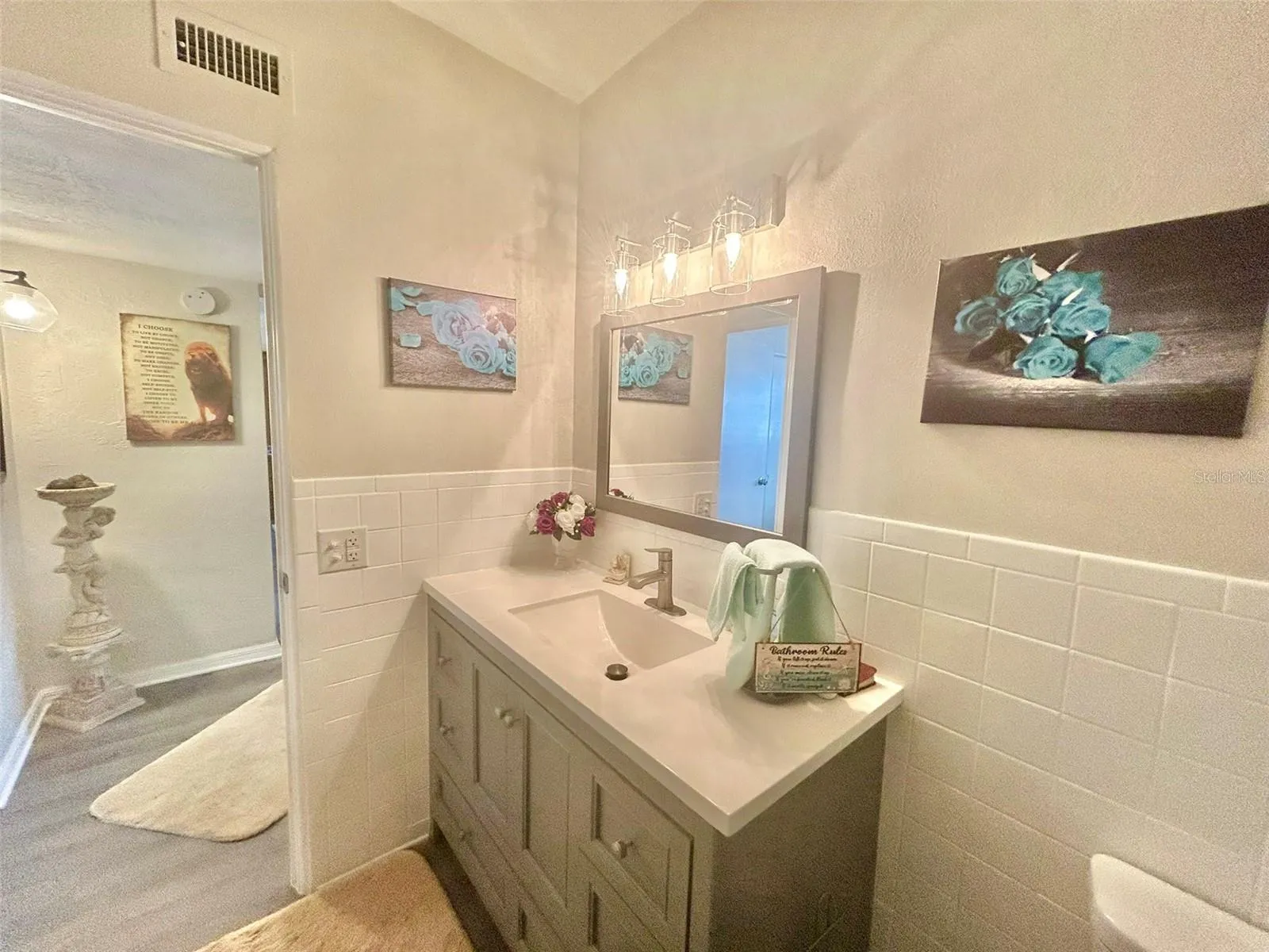 Discover your dream home! Check out this magnificent 2 bed/ 2 bath remodeled condo! Located on third floor, you will never have anyone above you. Not to mention, situated in a FEE SIMPLE building. Additionally, just a short walk from the East activity center. Upon entrance, the luxurious flooring will capture your attention. No carpet anywhere! Indulge your culinary desires in this striking kitchen! Featuring soft close shaker style cabinets, exquisite granite countertops, stainless steel appliances, even a coffee bar with pantry! Beyond the kitchen, relax in the sizeable Florida Room. The primary bedroom is quite large and has an en-suite retreat with an updated vanity, lighting, glass shower doors, just to name a few. The secondary bath has updates as well, including an impressive vanity, lighting, and newer toilet. As an added bonus, there are two exterior entrances for convenience and privacy. The second exterior door provides direct access to the guest bedroom, creating a private entry that can serve multiple purposes. HVAC was replaced in 2018, and water heater in 2023. Schedule your showing today! Assigned parking. The 55+ community has two activity centers, and two private golf courses with 9 and 18 holes, free exclusively for resident owners. There are two heated swimming pools. The remodeled Cardio Gym has the latest exercise equipment. A very pet-friendly community, there is a fenced dog park with covered seating. There are hobby studios, and a wood shop for the exclusive use of the residents. Activities include fitness classes, dancing, clubs, cards, billiards, entertainment, classes, and much more. The on-site Good Karma Café has take & bake meals and snacks. Close to beaches, transportation, shopping, entertainment, and fine dining. All room sizes, floor plans and square footage are approximate. If financing, a 35% down payment is required.
