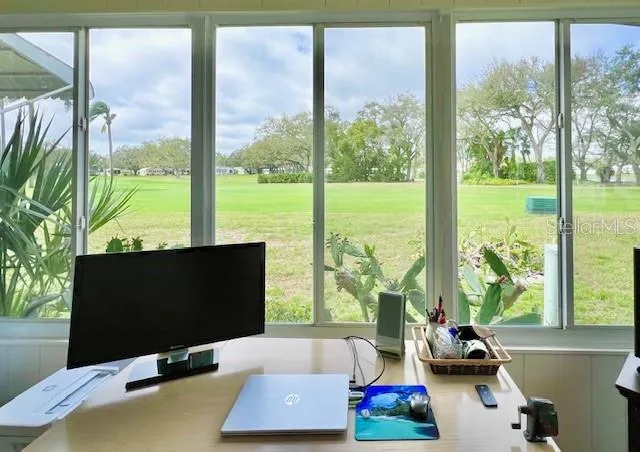 ON THE GOLF COURSE! Don’t miss this rare opportunity to own a beautifully maintained 2-bedroom, 2-bath home in Fairway Village with 1,372 sq. ft. of living space plus a bonus enclosed office/Florida room offering sweeping golf course views. This exceptional home features a well-maintained metal Roof Over, vinyl siding, newer windows, dual outdoor water shutoff valves, a water softener, and a vapor barrier in great condition with decorative block skirting. The A/C system is well maintained (2018), water heater (2024), and dryer (2024) add peace of mind, while 1/2-inch plywood beneath the laminate floors and granite countertops in both the kitchen and bathrooms reflect the home’s quality and thoughtful upgrades. All appliances were updated in 2018, and the spacious Florida room with a sofa bed offers added versatility. Both bedrooms feature large walk-in closets, and the home is being offered fully furnished for a truly move-in-ready experience. Located in the premier 55+ community of Fairway Village—where a share is included in the list price—residents enjoy access to a stunning new 19,000 sq. ft. clubhouse, two pools, jacuzzis, eight covered shuffleboard courts, and a 9-hole par 3 golf course for a small fee. Ideally situated near top attractions, airports, and Florida’s beautiful beaches, this home offers the perfect blend of comfort, convenience, and resort-style living. Schedule your private showing today and experience the breathtaking sunset views for yourself.