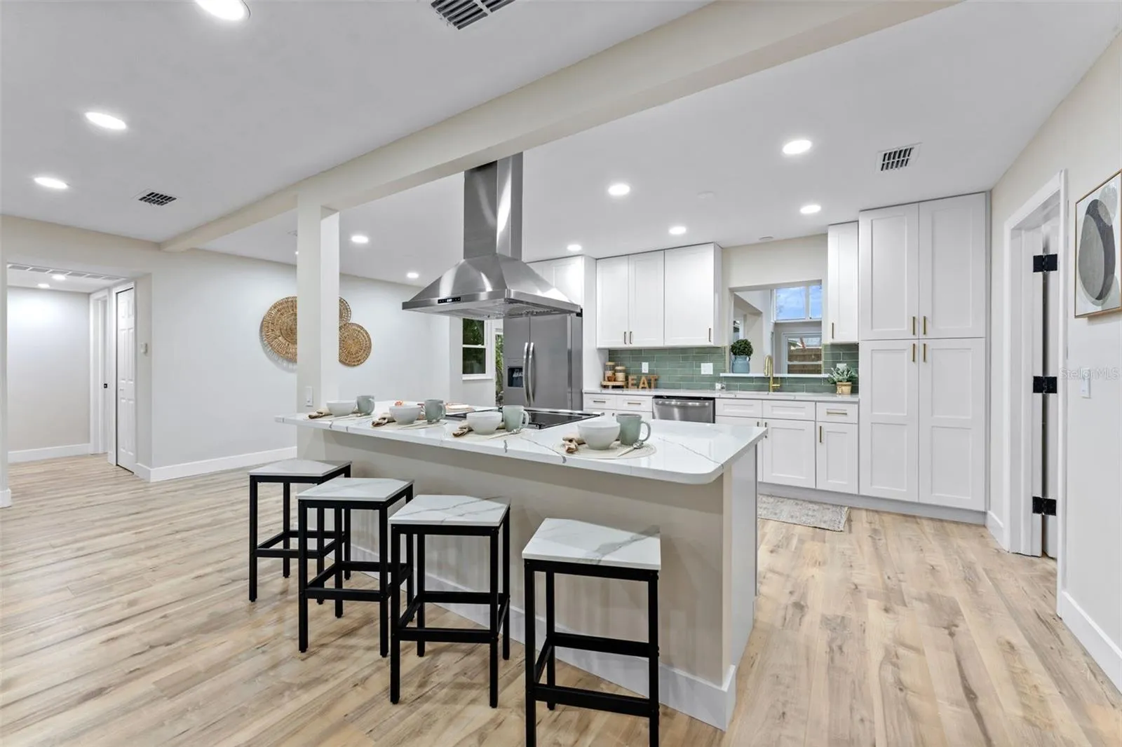 This fully renovated home includes updates such as new roof, new HVAC, new windows, updated electrical, new hot water heater, new floors, all new bathrooms and designer-finishes through out. The chef’s kitchen stuns with solid wood shaker cabinetry, stainless steel appliances, quartz countertops, and a statement center island that flows seamlessly into the main living area—an entertainer’s dream.
