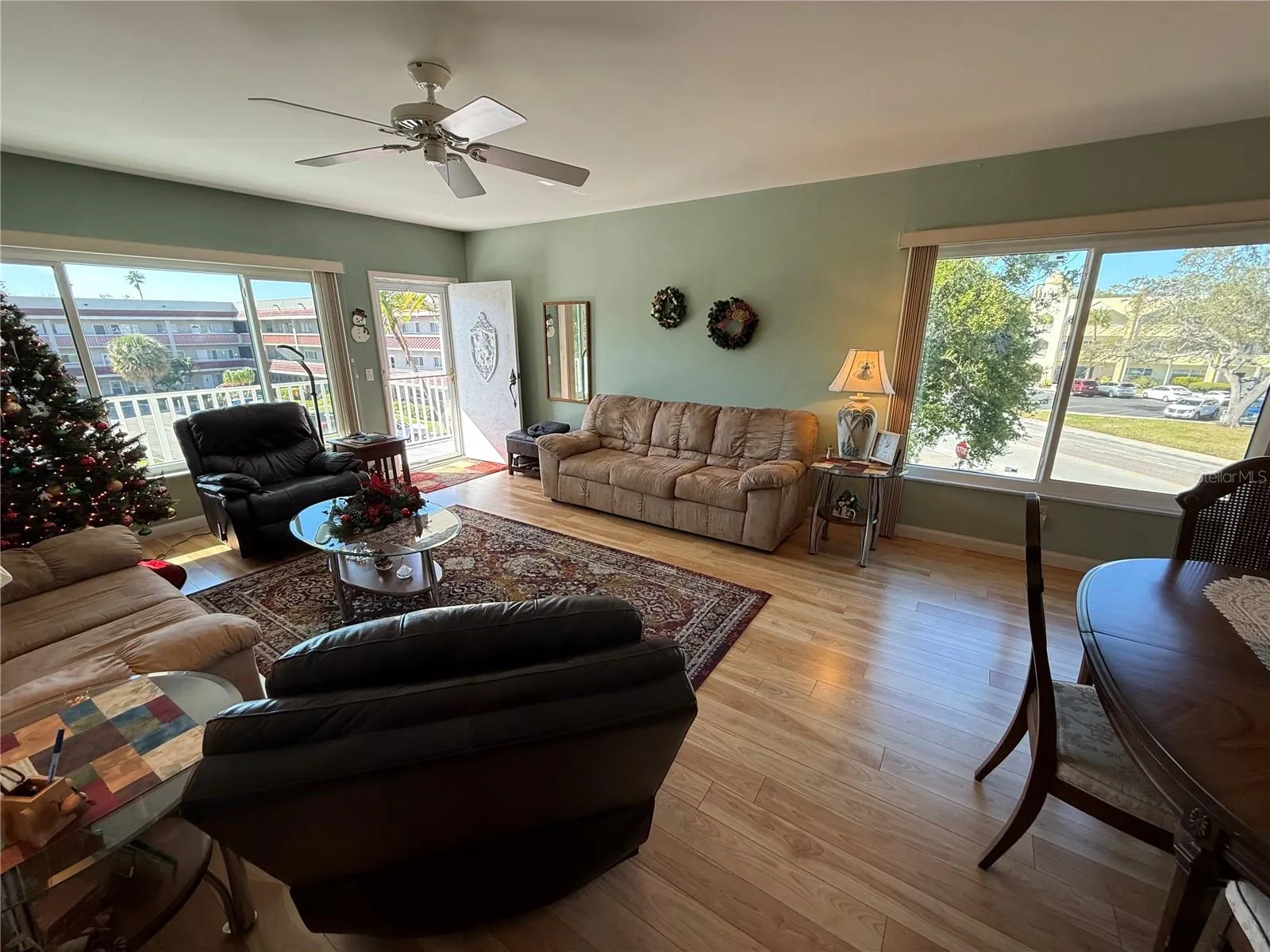 Beautiful two-bedroom, two-bath third-floor end unit offering approximately 1,400 sq ft of living space. Ideally located just steps from the East Community Center, providing residents access to a wide variety of activities and amenities. As an end unit, this condo is filled with natural light through hurricane-rated impact windows installed in 2022. Attractive laminate flooring flows seamlessly throughout the main living areas. Both bathrooms have been updated within the last five years, with the primary featuring a walk-in shower and the guest bath offering a shower/tub combination. The spacious kitchen and Florida room provide ample space for entertaining family and guests. The unit offers abundant storage throughout and a private storage locker as well. A water softener is currently leased at $40 per month, with the option for the new owner to assume the lease. Move-in ready and offered furnished at the seller’s preference. Schedule your private showing today to see all this gorgeous condo has to offer. Please include the following language in the Additional Terms of the FAR/BAR “As Is” Residential Contract for Sale and Purchase: “The property is being transferred by a warranty leasehold estate deed.”