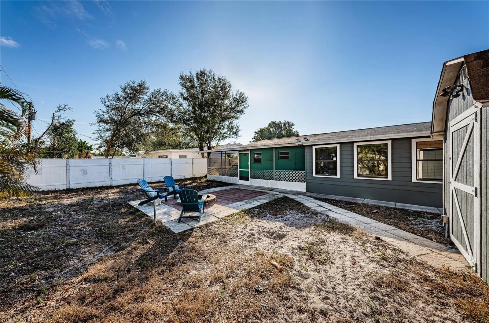 a fire pit for relaxing evenings and a screened-in rear porch for year-round enjoyment.