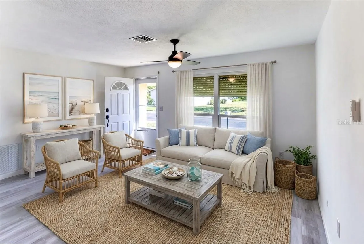 One or more photo(s) has been virtually staged. Don’t miss the opportunity to make this tastefully updated single family home, situated on a large lot with no rear neighbors, yours! Located in the popular “Lakes” 55+ Resort Style living community, this home has an open floor plan with an abundance of natural light and feels larger than the square footage with a 15’ X 9’ screened-in lanai. Many features include brand new “wood look” porcelain tile, fresh paint, ceiling fans and fixtures througout, hot water heater (2025), newer windows, roof (2020) and air conditioner (2020). The kitchen boasts quartz countertops, wood cabinetry, stainless steel appliances, and a lovely backsplash, hardware & faucet! The primary and secondary bedrooms are a good size – the primary has a large walk-in closet and both bedrooms feature new plantation style closet doors! The garage is oversized and includes a designated area for your washer and dryer. The Lakes community features a heated pool and picnic area, shuffleboard and a clubhouse that can be reserved for social community or personal events. The amenities also include a game room to enjoy a game of pool and a library! A low $305 monthly HOA fee includes everything except the electric – maintenance free! Location is perfect close to the Beaches, Tampa Airport, great restaurants and shopping. This home is equipped with hurricane shutters but is not in a flood zone. Note: The house is currently vacant – some pictures are virtually staged with endless possibilities and also included are the original pictures.