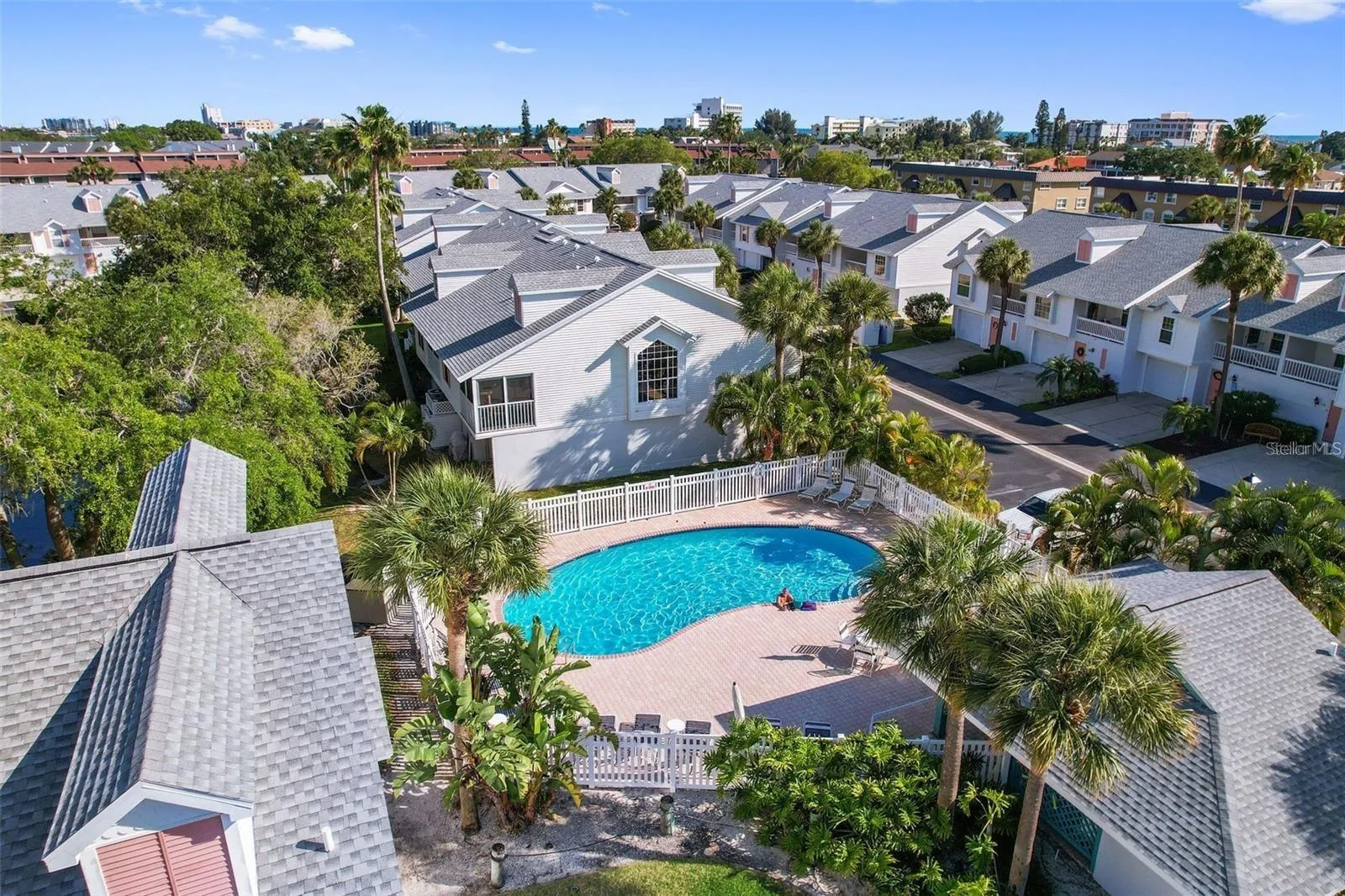 SUNKETCH III (72 units) 2-bedroom 2 bath TOWNHOME on “Isle of Capri,” built in 1990, offers stunning, bright & airy 2nd floor living areas with soaring customized white plank ceilings plus a secure 3-CAR GARAGE with additional storage room and exterior patio. The kitchen is complete with Granite counters, a charming window seat & brand-new BEKO refrigerator. New wood laminate flooring with 5” baseboards throughout, newer low-emission windows, ceiling fans in all rooms, and inside laundry room (washer/dryer convey). The spacious master bedroom with vaulted ceilings & roomy walk-in closet features an En-suite bathroom remodeled in 2023. There’s a cozy Sun Room off the Great room – perfect for curling up & reading your favorite book. The roof was replaced in 2021 and A/C in 2016. ALL AGE Community (minimum 30-day rental), 1 small PET permitted. Monthly HOA fee includes: water/sewer/trash, basic cable, Internet, heated pool, private roads, common area maintenance, Association management, grounds upkeep, Termite bond, fully funded escrow reserves and master- and flood insurance policies. Venture to nearby restaurants, bars and “Roselli Park” for a plethora of outdoor activities, including tennis, basketball, pickle ball, playgrounds & dog park. 10-min stroll or short bike ride to our most beautiful white, sandy Gulf beaches for stunning sunsets, jogging, tanning, boating or fishing. 25-min ride to Tampa International Airport and the vibrant downtown of St. Petersburg. HOA application & buyer approval required. Don’t miss this desirable opportunity to own your slice of paradise, an affordable primary residence, rental or investment property & experience the best of coastal living with all the comforts of a home. Assignable pre-paid flood insurance policy in place until mid 2027!