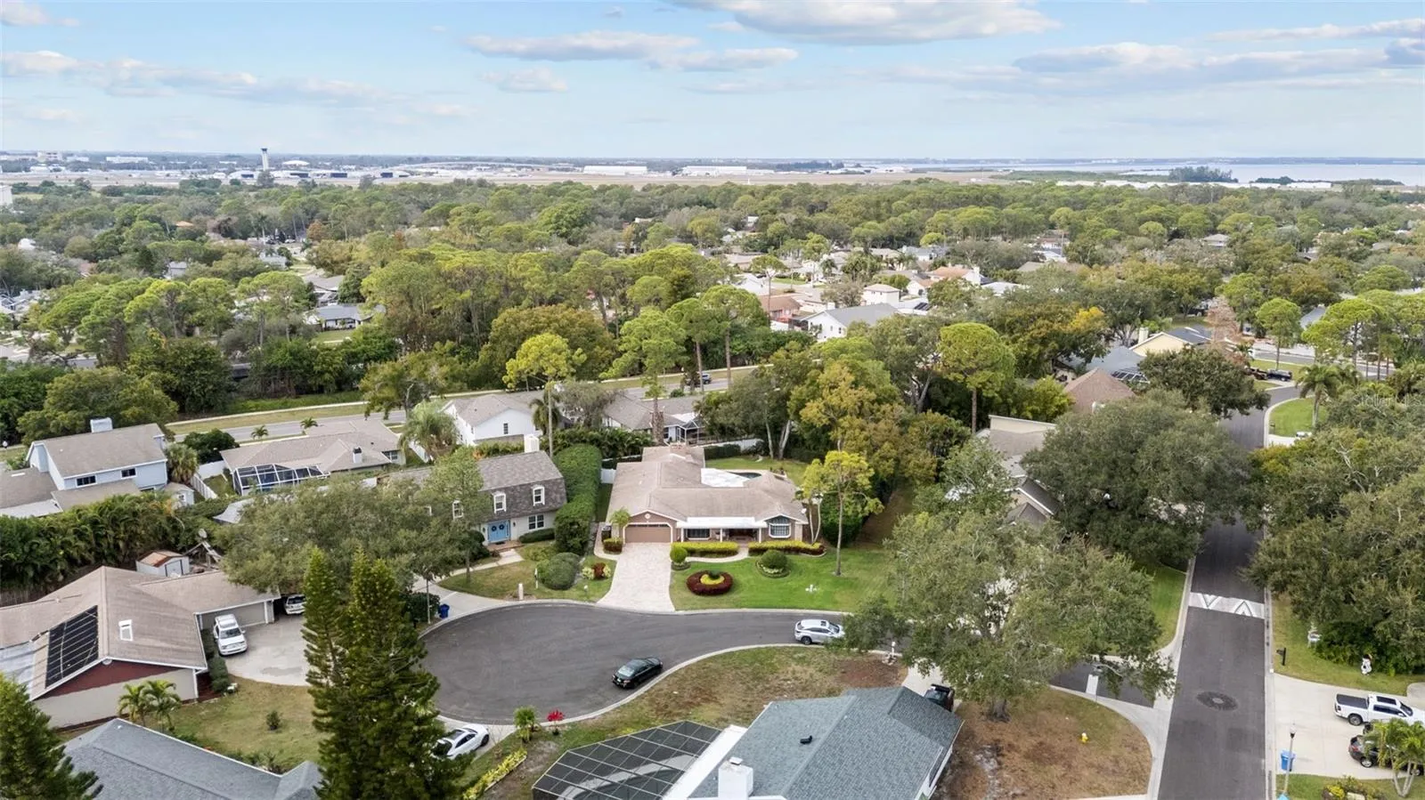Welcome to beautiful Feather Sound—this custom residence is perfectly positioned on an oversized lot – more than a quarter acre – in one of the community’s most desirable locations, tucked away on a quiet cul-de-sac. A rare single-level home, it offers a unique and highly sought-after floor plan ideal for blended families, multigenerational living, or hosting guests with ease. Built around the enjoyment of outdoor living and entertaining, the backyard is truly the star of the home. Enjoy a lush, private setting featuring expansive paver patios that surround the in-ground pool with salt generated chlorinator, Pebble Tec finish & safety fencing—the perfect backdrop for the Florida lifestyle. Designed with indoor-outdoor living in mind, the home offers a natural flow from poolside relaxation to refined interior spaces. At the front of the home, the covered front porch welcomes you into formal living and dining spaces anchored by a gas fireplace with marble hearth, creating an elegant setting for gatherings. The renovated kitchen features solid wood cabinetry, granite counters, breakfast bar, Induction cooktop and built-in ovens. A second living area with wood burning fireplace flows seamlessly from the kitchen and informal dining space, with a convenient pass-through to an enclosed sun porch overlooking the pool. The spacious primary suite easily accommodates large-scale furniture and a work-from-home setup. It features a generous walk-in closet, dual vanities, and a light-filled bath with sunken shower, skylight, and private access to the pool. Bedrooms are arranged in a three-way split for privacy, including a guest bedroom with hall bath and two additional bedrooms with ensuite baths. The fourth bedroom suite is ideal as an in-law or guest retreat, offering nearly 500 square feet, French doors opening directly to the pool, and a large storage closet. An oversized garage with paver driveway, bonus refrigerator & stand alone freezer, large indoor laundry room, additional outdoor storage shed, and a fully fenced backyard complete this exceptional home. Surrounded by mature landscaping and designed for both everyday comfort and entertaining, this Feather Sound property offers an exceptional opportunity to enjoy refined Florida living. Major systems: Roof replaced 2012, Zoned HVAC 2021, 2014, Water heater 2023, pool pump 3yo, generator, water softener and security system that covers all windows and doors – wired & wireless. The optional Feather Sound Country Club offers an 18-hole championship course and social amenities, and there are parks, bike paths, and green space throughout the area with lush landscapes, walking and biking trails, ponds, and bird-watching opportunities, giving residents a relaxed, outdoor-oriented lifestyle. Feather Sound’s central location makes it easy to reach downtown St. Petersburg, Clearwater, and Tampa, as well as major roadways like I-275, which supports convenient commuting and quick access to beaches, regional airports, and shopping and dining options nearby. Sitting on high ground, this home experienced no flooding during the 2024 storm season