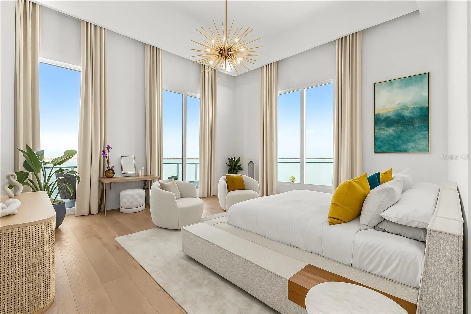 One or more photo(s) has been virtually staged. One or more photo(s) has been virtually staged. Perched atop the most coveted address in Clearwater, Sky Penthouse 703 at Serena by the Sea offers a rare opportunity to lease a fully furnished masterpiece of design, technology, and coastal luxury. This trophy-level residence spans the entire corner of the tower’s top floor and features soaring 16’+ ceilings, floor-to-ceiling glass walls, and unobstructed views stretching across the Gulf, Intracoastal, Clearwater Beach, and downtown skylines. Designed for total immersion in luxury, the home includes integrated smart automation, built-in speakers, electric blackout shades, and designer furnishings throughout. With 3 spacious bedrooms, 3.5 spa-like baths, a fully equipped office, and a state-of-the-art private theater, every inch of this penthouse is crafted for elevated living. The chef’s kitchen is fitted with Gaggenau appliances and Italian cabinetry, while the wraparound terrace—with no neighboring balconies—offers unrivaled privacy and sunset views. Residents enjoy exclusive access to over 23,000 sq ft of resort-style amenities, including a saltwater zero-edge pool, private cabanas, luxe spa with sauna & cold plunge, high-performance fitness center, fire pit lounges, and a vibrant clubhouse. A new private marina is currently under development, with priority slip access offered to residents. This lease includes three reserved garage parking spaces, climate-controlled storage, and full use of all amenities. Welcome to the Sky Penthouse. One-of-a-kind. Fully furnished. Move-in ready. Available now.