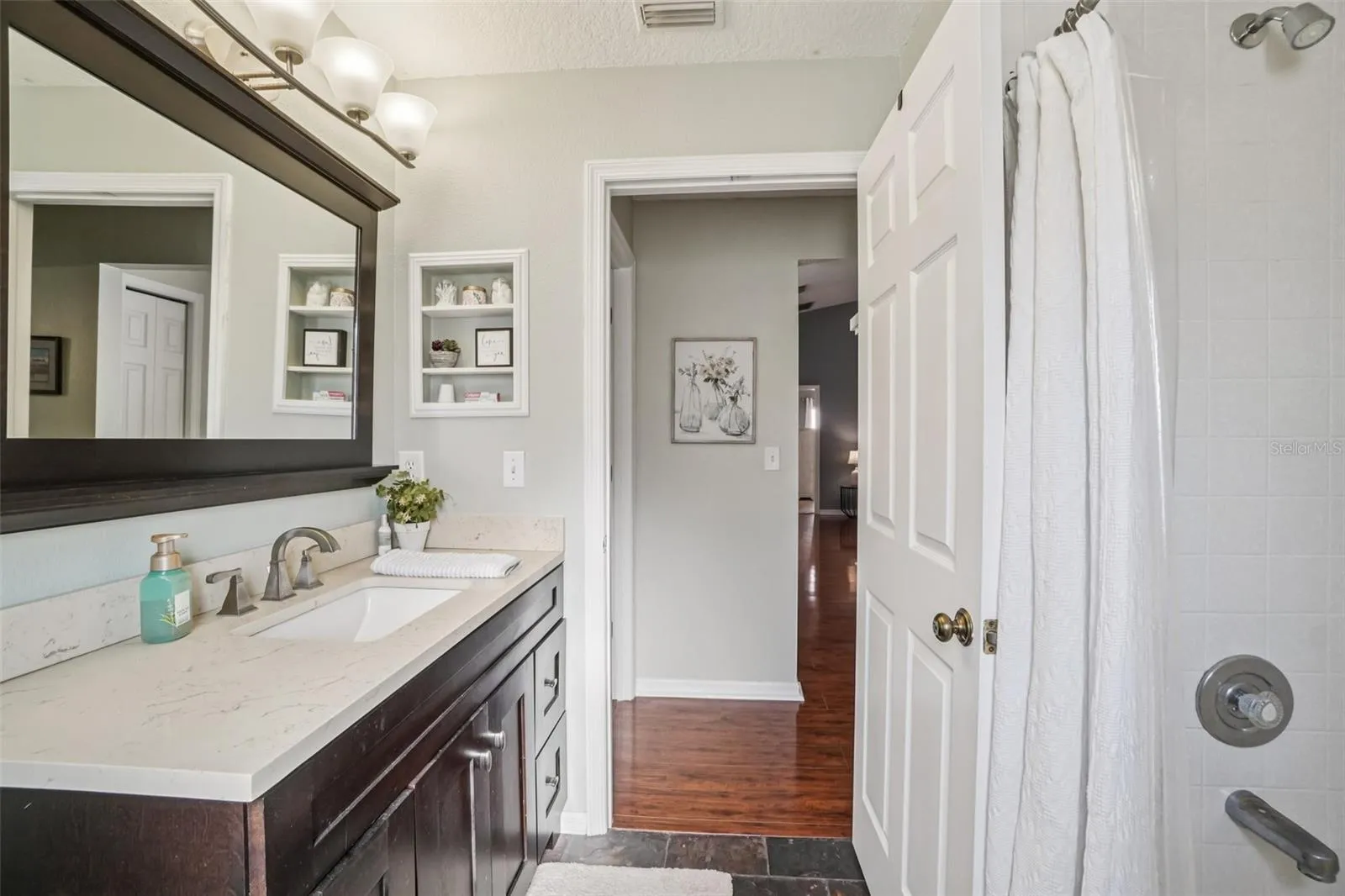 Additional features include an interior laundry room with cabinetry and sink, an attached garage, and established landscaping. Major systems include a roof installed in 2012, HVAC system installed June 2014, and a water heater installed December 2025. The seller reports no flooding occurred at the property during recent hurricanes.